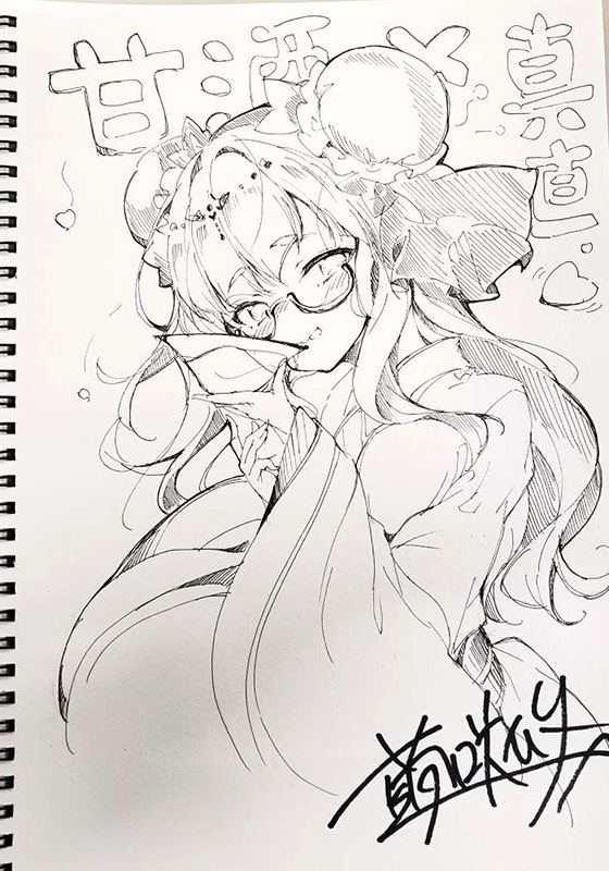 繭咲先生に「甘酒な真直」のお題で描いていただきました。