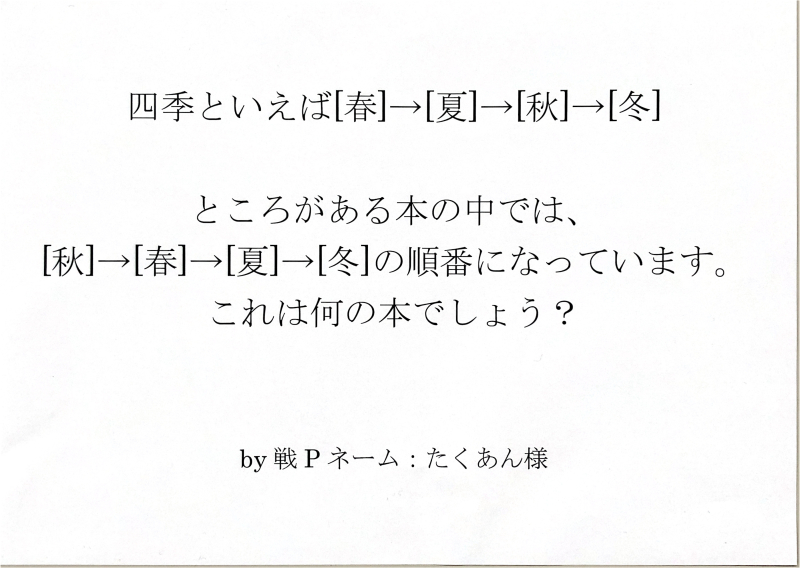 答えは、クイズうさぎ奪還と同じく一番最後にありますので答えを知りたくない方は