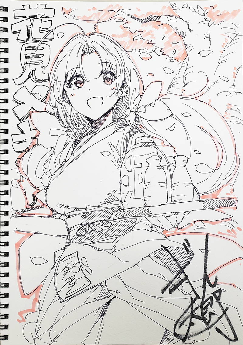 今回は、ぎん太郎先生に『お花見なきよちゃん』を描いていただきました。