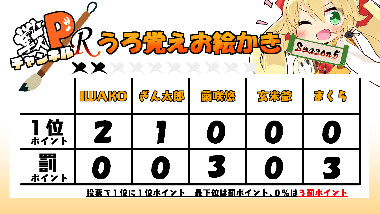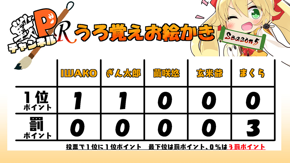 そして最下位繭咲先生には罰ポイント1P贈呈!